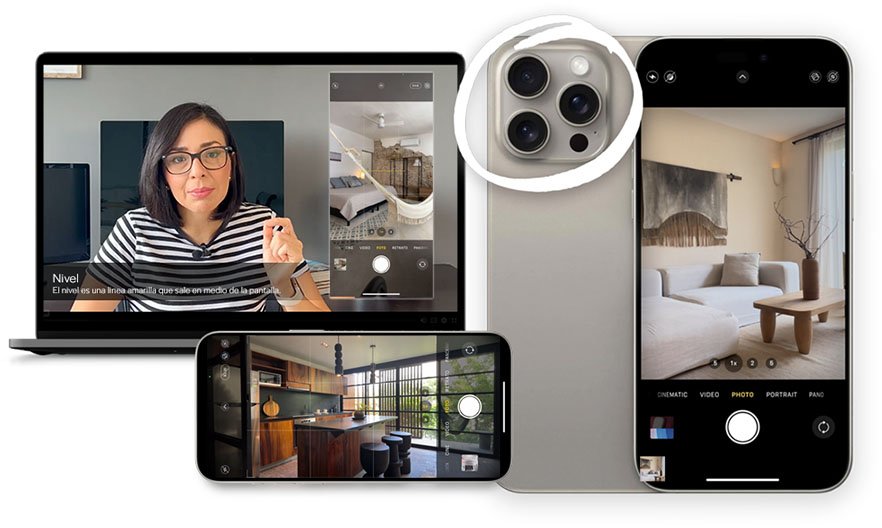 Todo lo que necesitas para transformar tus fotografías inmobiliarias y comenzar a tomar fotos y video reels de calidad con tu celular.